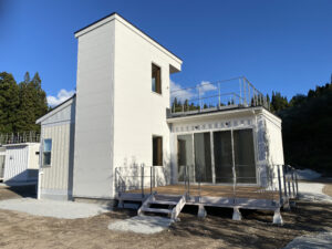 博多港へ出荷した店舗として活用される建築用コンテナ30HCの設置作業が完了しました。