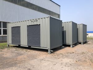 ただし、ISOコンテナと同様サイズでないと海運コストが非常に割高になってしまうため、ちょうどISOコンテナと同サイズになるように鉄枠を作成しました。この鉄枠は最初の輸送時のみ使用され、現場に到着後は取り外しができるようになっています。